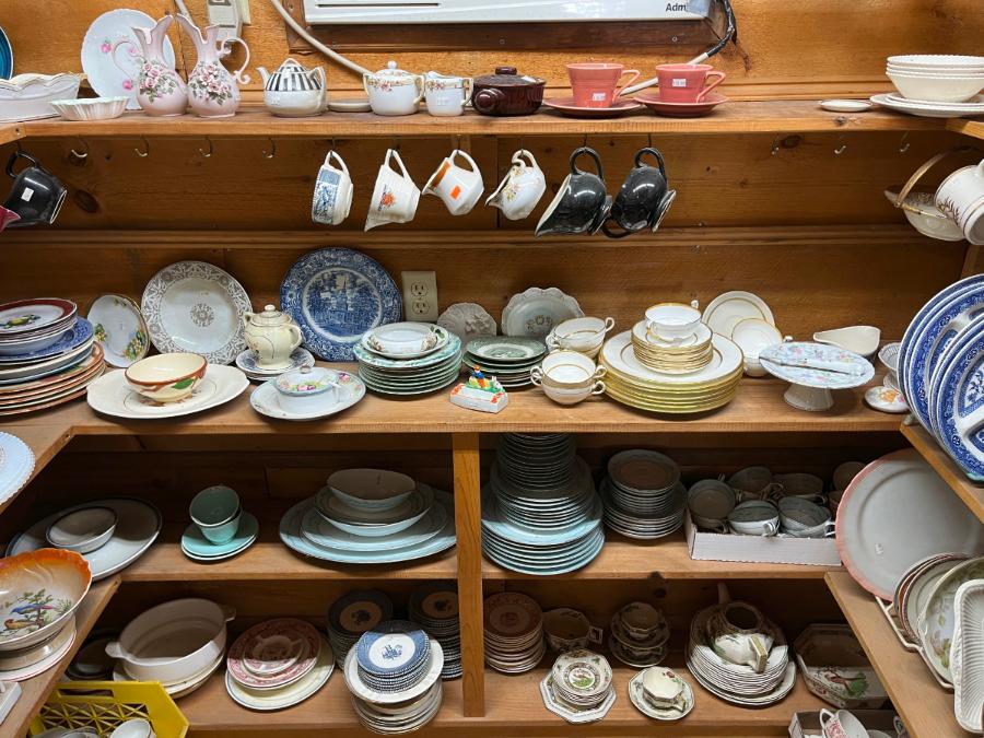 Early Glass and Ceramic European Asian British USA Tea Cups and Saucers Blue Willow Collectable Honey Pots Clowns