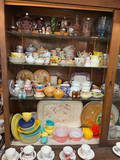 Red Block Depression Glass Asian Porcelain Tea Pot Mid Century Dinnerware Corning Casserole